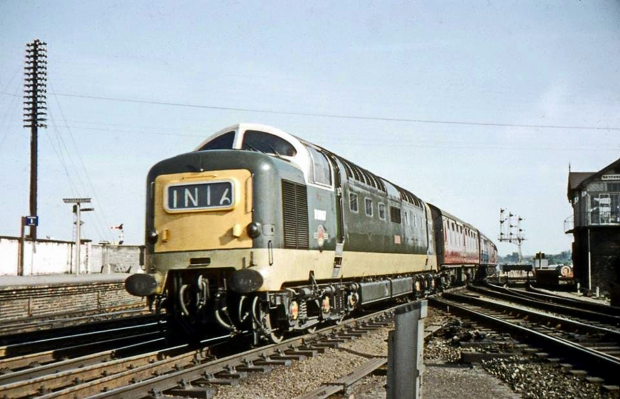 D9007 "PINZA" passes Retford with the Sunday 1N16 13:20 King's Cross - Harrogate service on 30th August 1964.